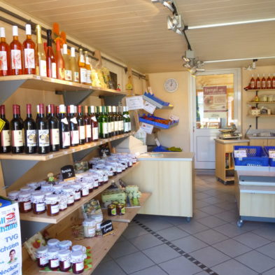 Die wenigsten unserer Gäste lassen es sich nehmen beim Besuch des Reisig-Hofes in unserem Hofladen zu „stöbern“. Er ist während der Öffnungszeiten des Hofcafés von 11.00 bis 18.00 Uhr geöffnet. Dort finden Sie ausgesuchte Weine, den beliebten Erdbeer-Secco aus unseren einzigartigen Lambada-Erdbeeren und hausgemachte Dosenwurst.